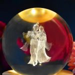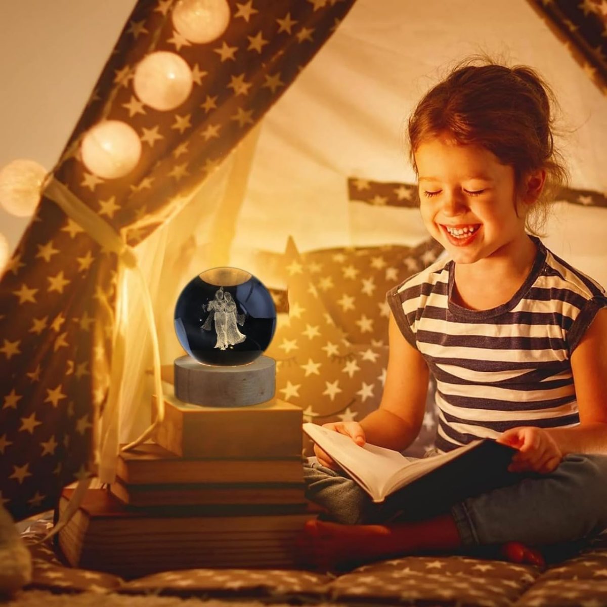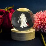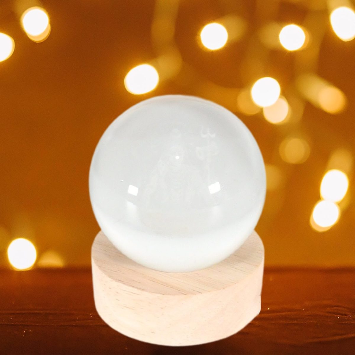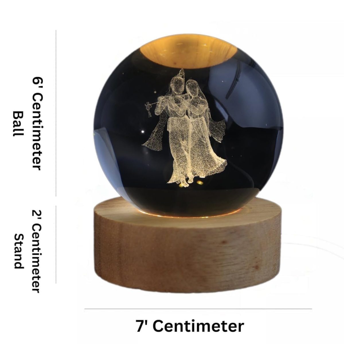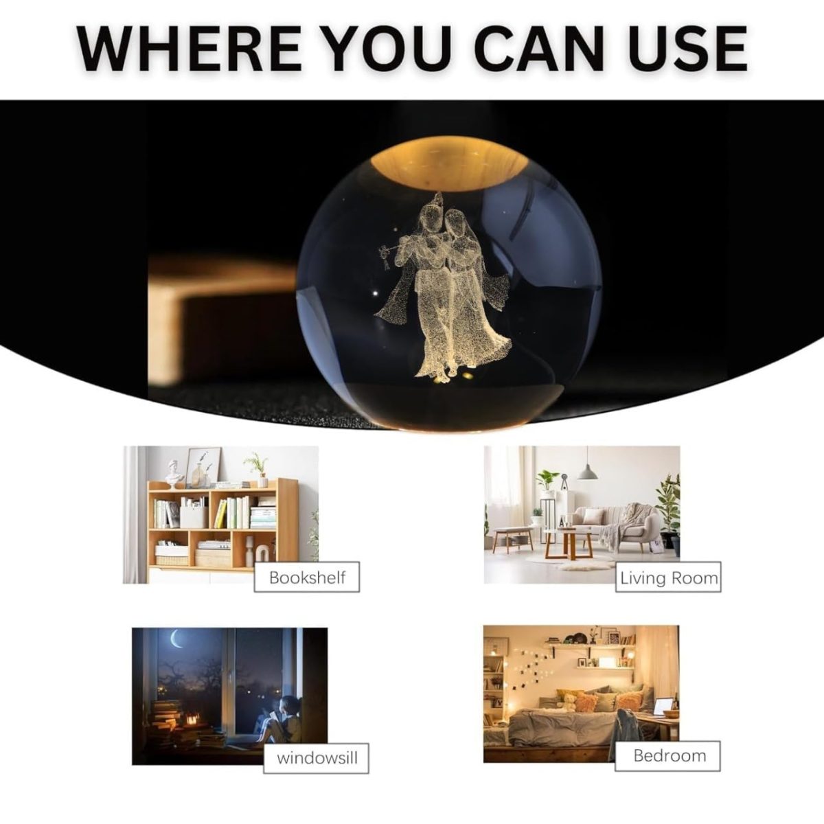 Radha krishna 3D Crystal Ball Night Light, LED Radha Krishna Design, 10 cm Glass Globe with Wooden Base, Touch Control, USB Powered, Warm Light for Bedroom