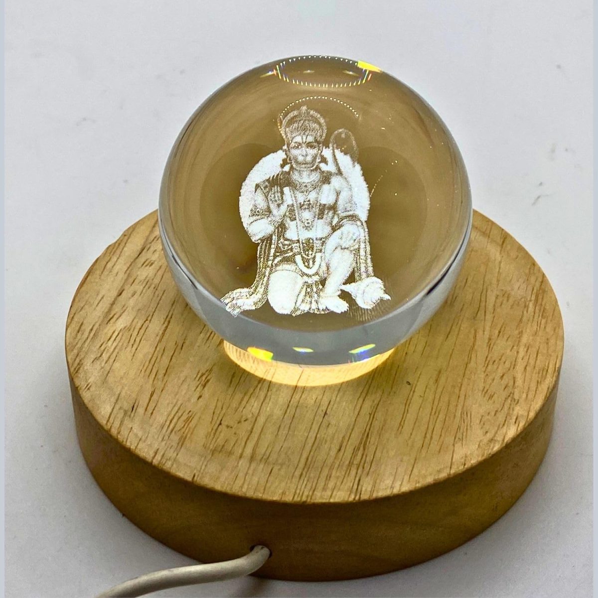 Hanumaan ji 3D Crystal Ball Night Light – Beautifully Designed with LED Wooden Base (Lord Hanuman)