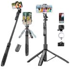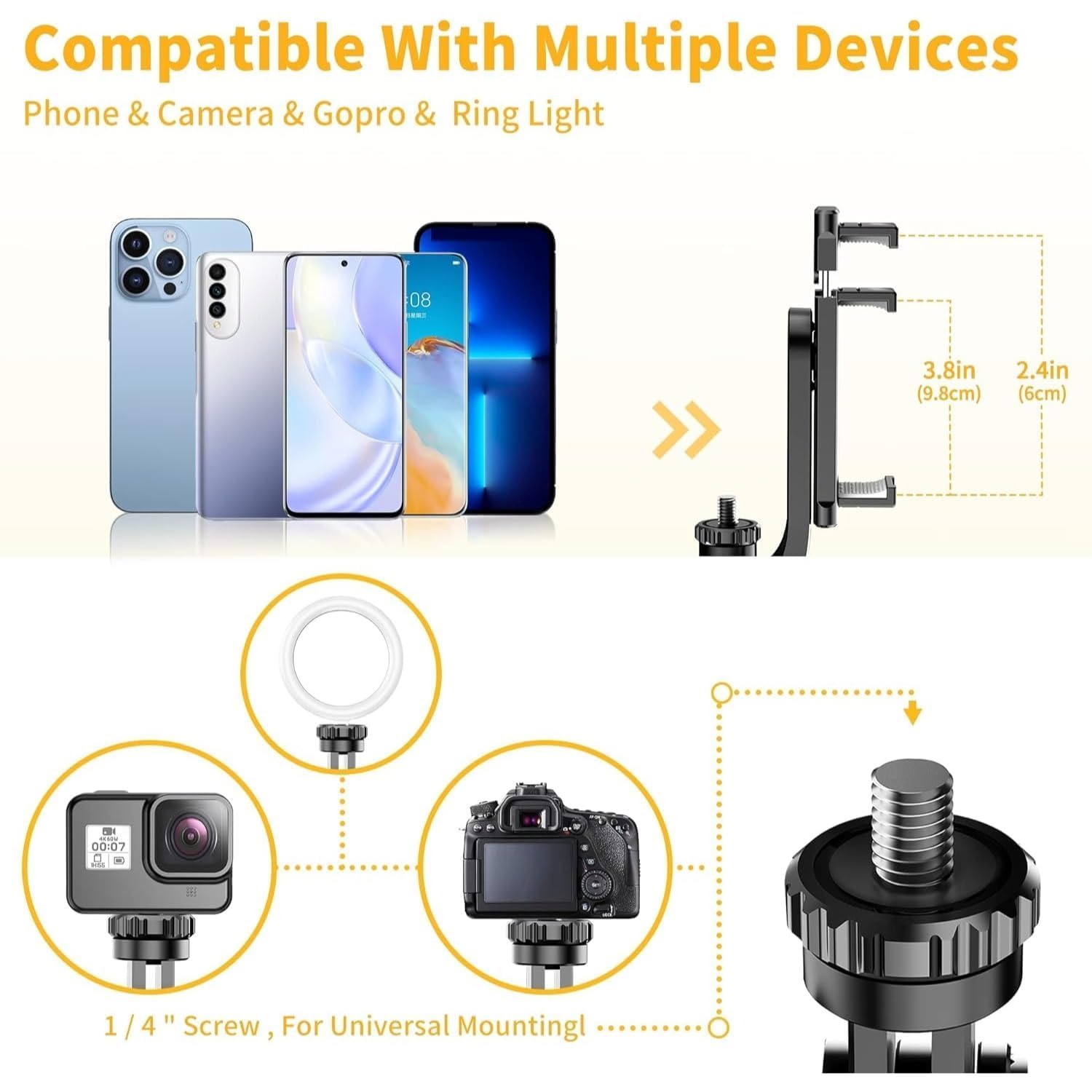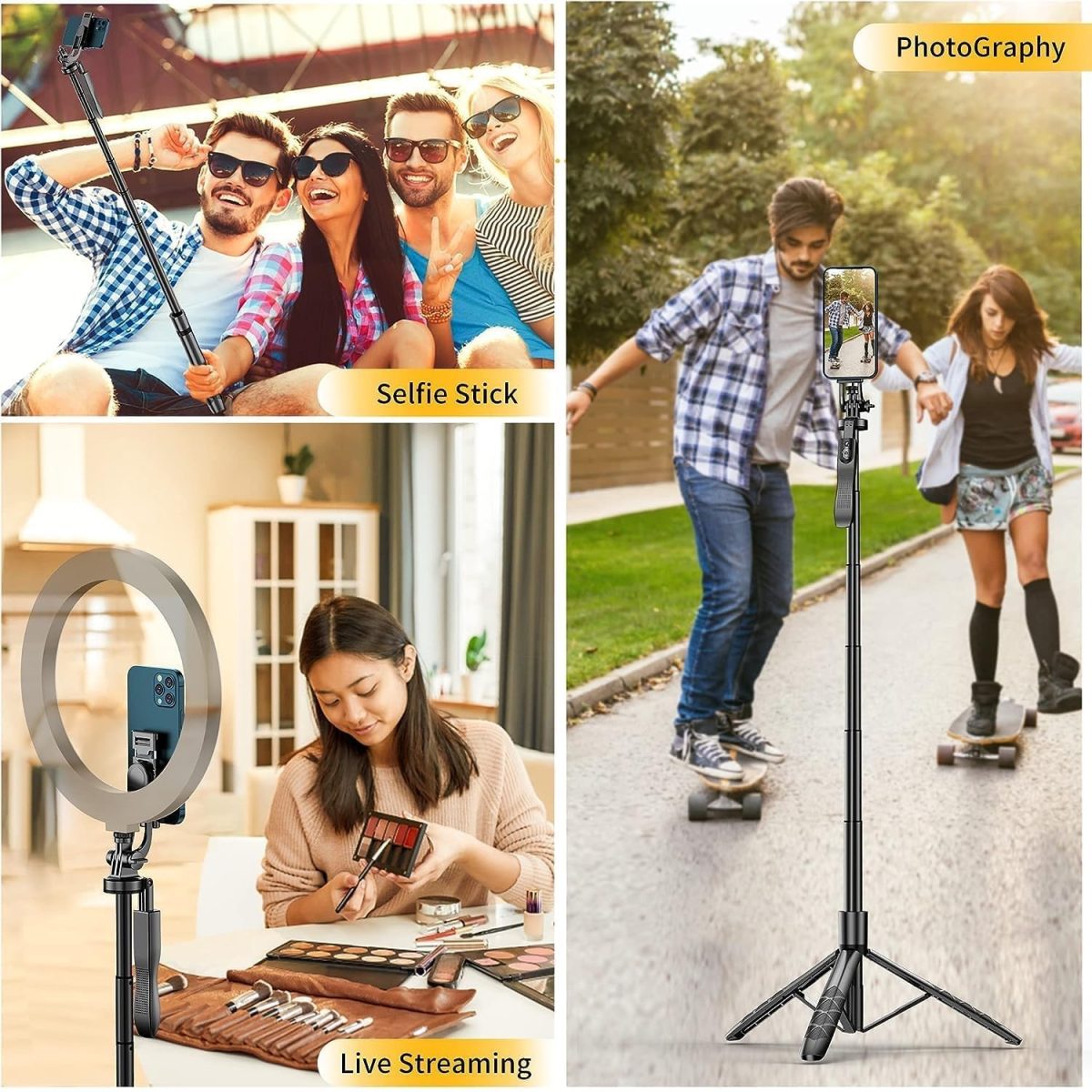• Upgraded Long Telescopic Pole tripod for phone with 6 Adjustable Sections, perfect for capturing those wide-angle shots and faraway moments. This Long selfie stick can be adjusted from 33cm to 153cm to capture wider landscape with different heights