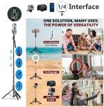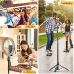 Details: Feature: 1. Adjustable Angle Phone Holder: 360 degree rotation, supporting horizontal and vertical shooting; 2. Widely compatible: 1/4 interface. It can be perfectly Compatible with Most Smart Phone in Market,Such as iphone and android smart phone. 3. Reinforced tripod+Bluetooth-compatible self timer: Optional fill light+six gear (three color temperature) 4. Lightweight and Portable: The professional & lightweight selfie stick tripod is made of high-quality aluminum alloy and ABS materials.It is compact and lightweight enough to store and take anywhere you go. Pack it in your purse, backpack, or suitcase without making a dent. 5. Service: Please feel free to contact us if you have any problems,we will do our best to serve you.