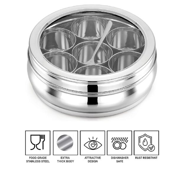 - The steel masala box, Bowls which are suitable for storing small quantity of mukhwas, dryfruit etc.