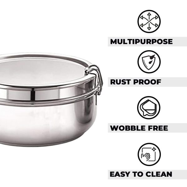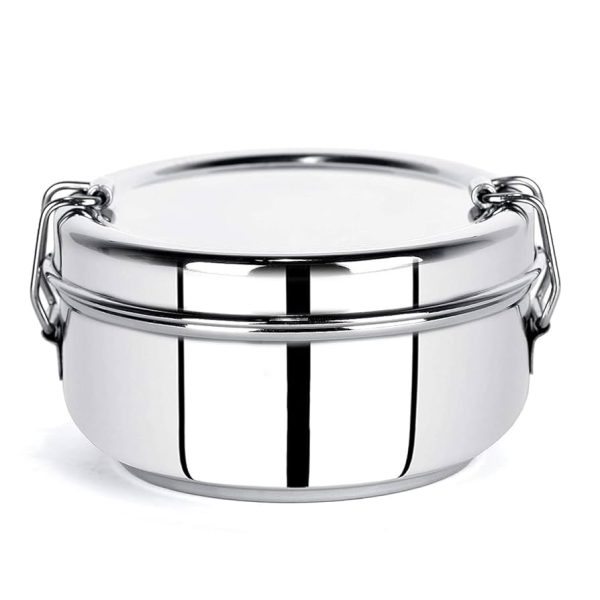 - Colour: Steel Plain, Material: Stainless Steel, Package Contents: 1 – Piece Steel Snack Medium Tiffin (700 ml including 220 ml of Steel Plate)