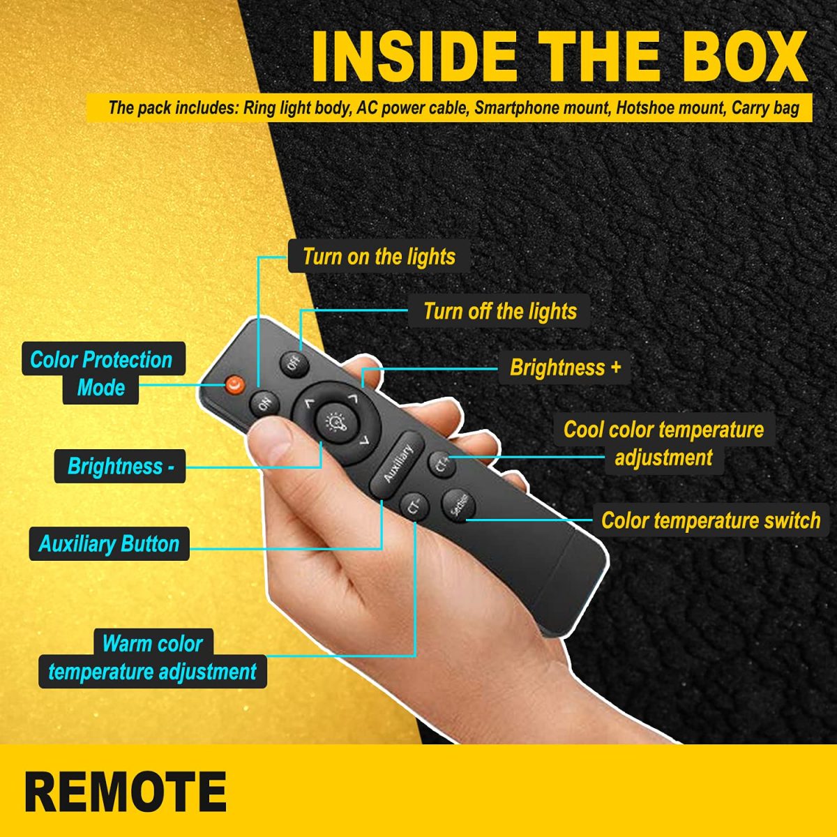 • Switch to the right light: Tygot bi-color led ring light comes with 240 pieces LED bulbs; Special LED SMD design; Come with hot shoe adapter for helping the camera or the phone holder be installed onto the ring light firmly.