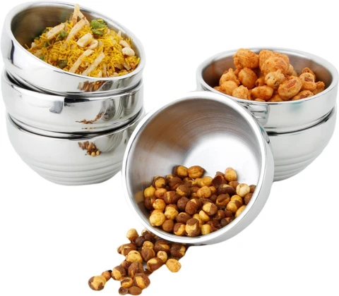• This steel bowl set comes with a wide mouth and round flat edge which makes this silver bowl easy for utilization.