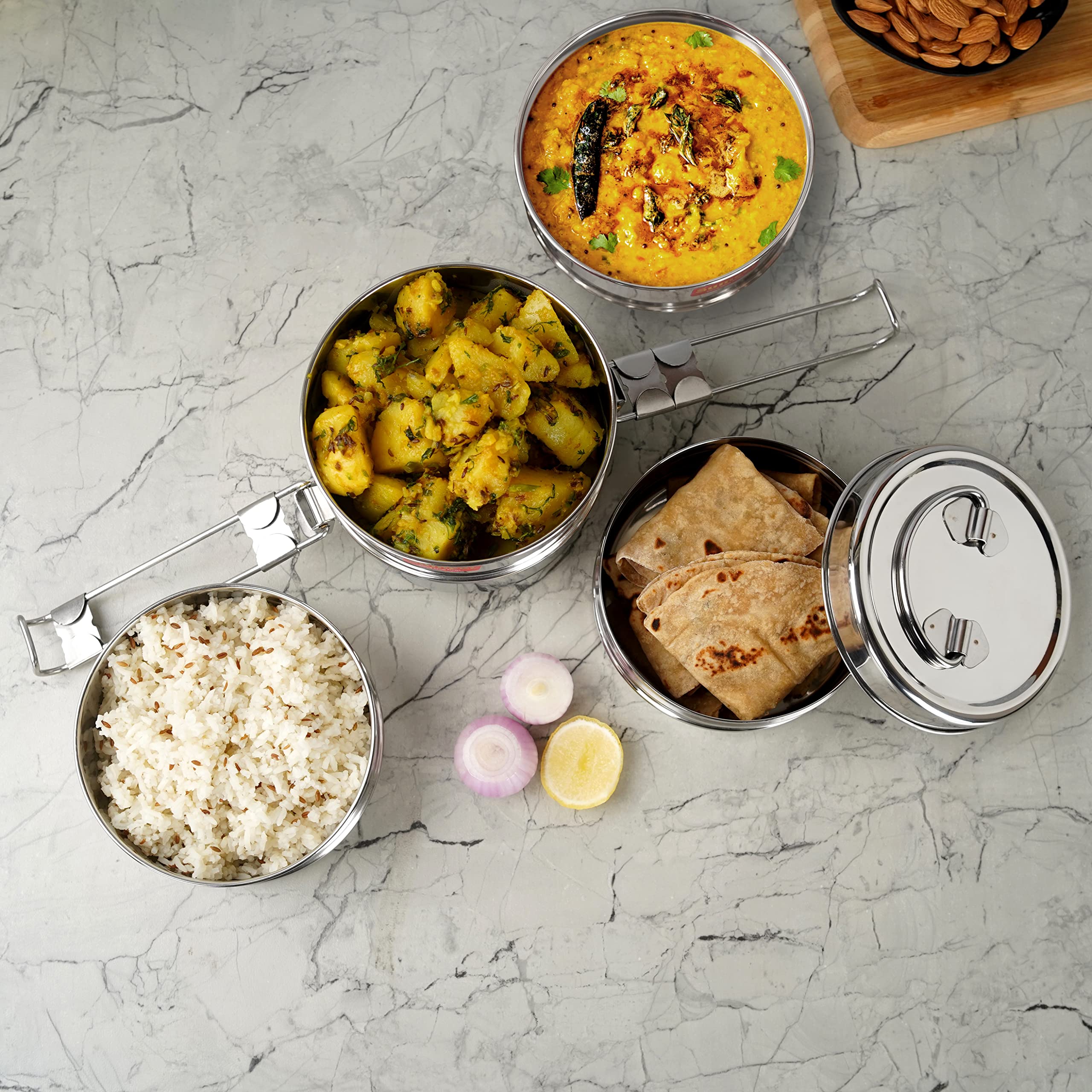 - An ideal Lunch Box with stainless steel is extremely usable and handy presentation from the house of SK 360 World. Clip Tiffin box allows you to easily pack a nutritious Lunch / Meal for you and your family.