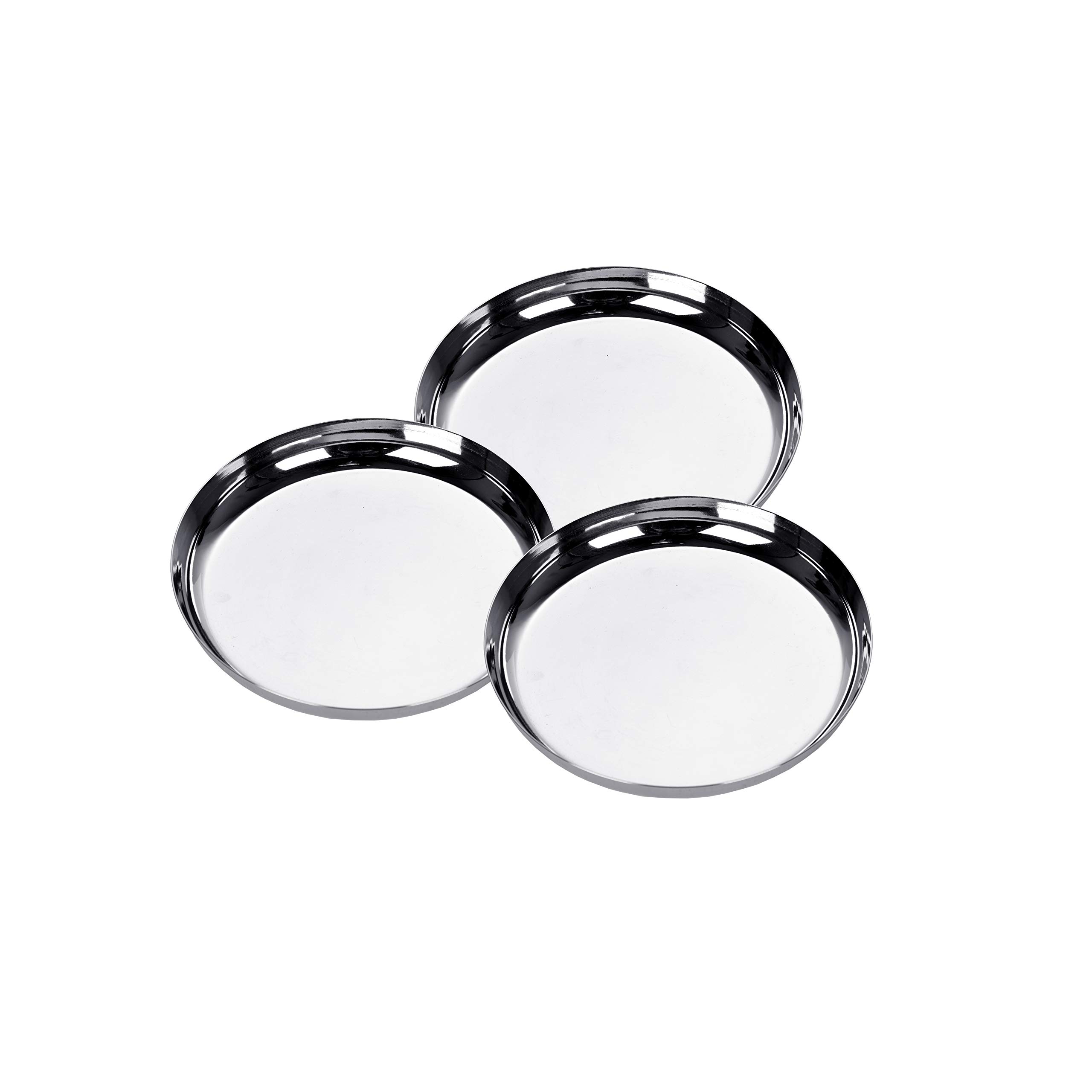 - One can have idli, upma, uttappa and many more dishes in these snack plates. This can be used as Gifting options for your Relatives or Friends on the Occasions like Marriage, House warming Ceremony and other events.; 3 S.S. Plates 17.8×17.8×2.2, Capacity – 500ml, Weight – 210gms(Each)