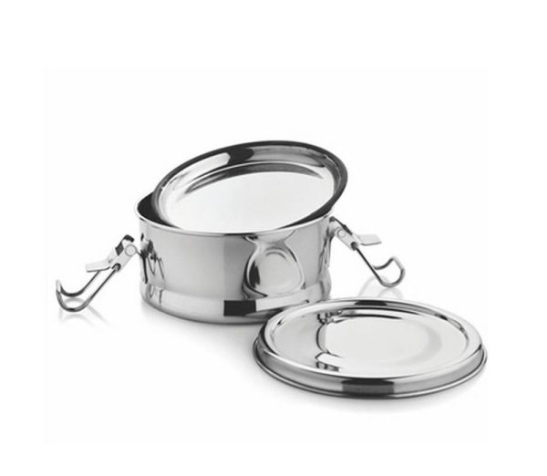 Stainless Steel Lunch Box for Kids, Single One Layer Leakproof Tiffin Box for School and Office Use with Inner Plate – Round – Small Size, 500 Milliliter – 500 Ml