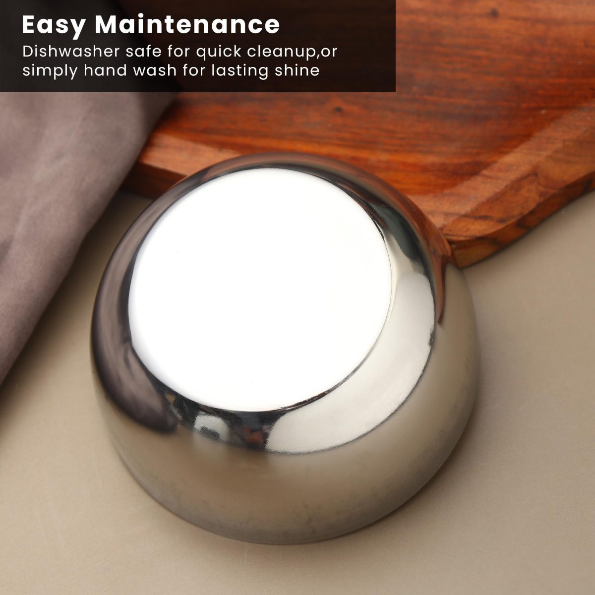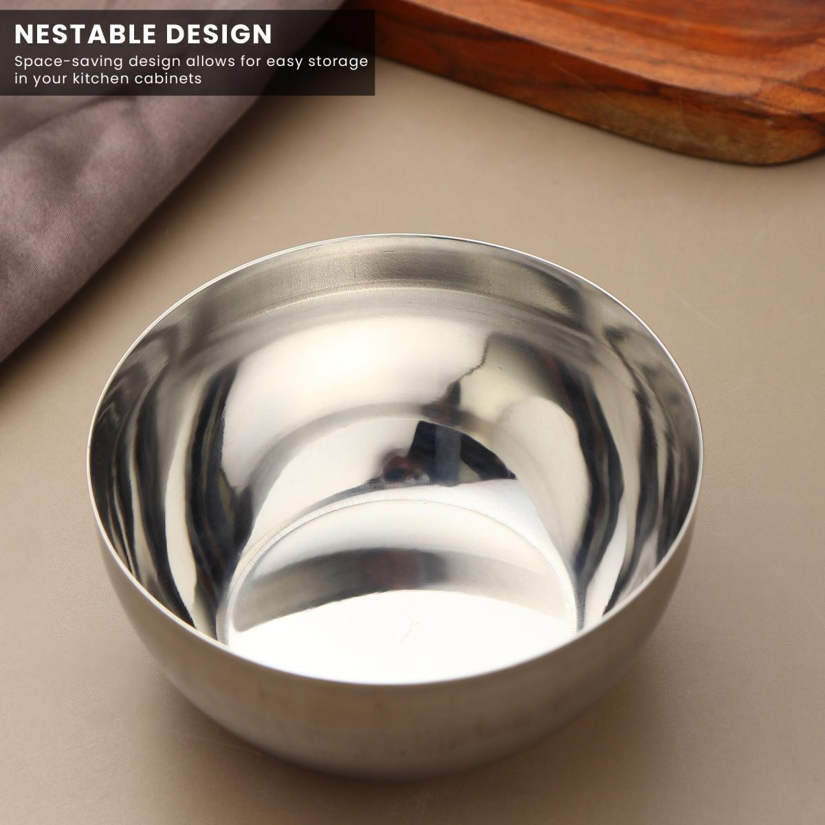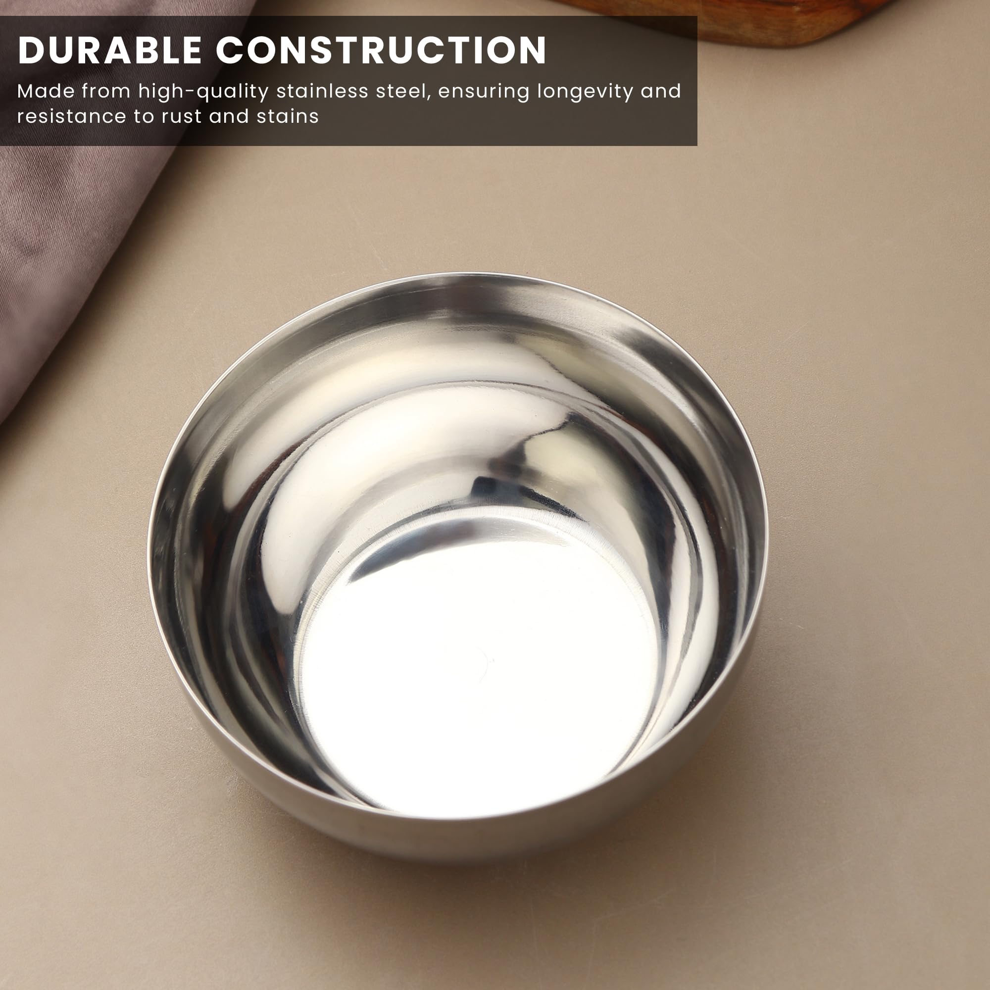 Steel Stainless Steel Heavy Gauge Bowl | Wati Set with Mirror Finish | Heavy Guage Apple Vati for Kitchen | Dinner Serving Bowl (Size- 5.5, Pack of 6)